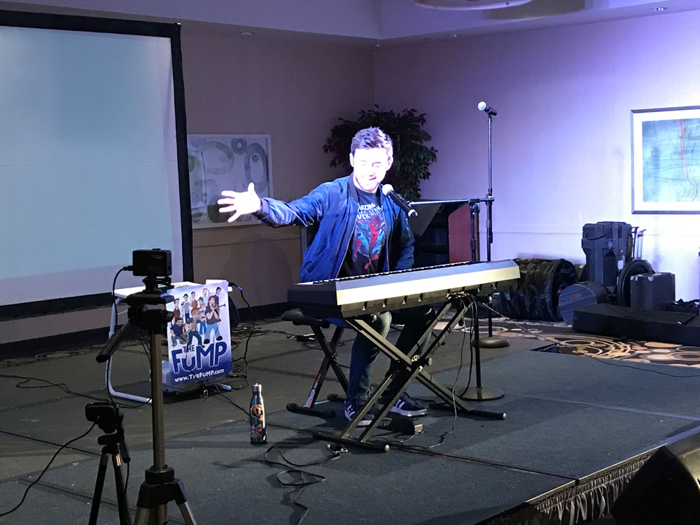 Guest of HonorThe Four Postmen - This five-piece band from California has a long history of hit songs on the Dr. Demento Show having scored several #1 songs. This was our first time dealing with a full live band and it went great! Performing Artists2d6 - Nerdcore rappers 2d6 returned to wreak havoc on the stage and as usual DJ Stuck Down a Mineshaft could not be contained. Bill Larkin - Local comedian Bill Larkin showed up for a full set this year and was one of the crowd favorites of the weekend. Lauren Mayer - Also making her FuMPFest debut after a brief appearance in 2017, Lauren Mayer showed up to do a full set and rocked it. Marc Gunn - Marc Gunn brought his autoharp and drinking song shenanegans to FuMPFest for the first time as well. Matt Griffo - Local favorite Matt Griffo returned to FuMPFest for another hour of warped songs on piano and ukulele. Mikey Mason - Professional geek-comedy-rock god Mikey Mason didn't cancel at the last minute this time, so you can cross that off your Bingo cards. Power Salad - Power Salad put on an amazing show, as usual, and Chris also ran sound for the weekend. So the fact that everyone sounded so good is entirely Chris' doing. Steve Goodie - Steve stopped at FuMPFest on his national house concert tour to put on a special version of Steve's Big Dumb Show! The Better Boobie Bureau - Chicago's Buffet of Burlesque showed up to do a burlesque tribute to "Weird Al" Yankovic, hosted by Amanda Cohen. The Library Bards - The Library Bards returned for another great set of geeky parody songs. The Shanty Shipwreck Show - If naughty pirate shanties are your thing look no further than The Shanty Shipwreck Crew. With nine or ten people on stage it's quite the experience. Witty Cindy - Local comedians Witty Cindy showed up—well, half of them anyway—for a late night comedy slot on Friday. |